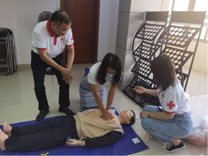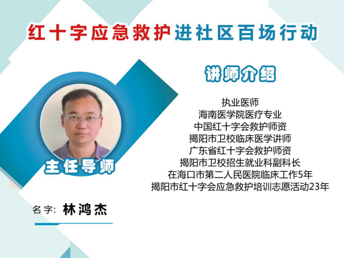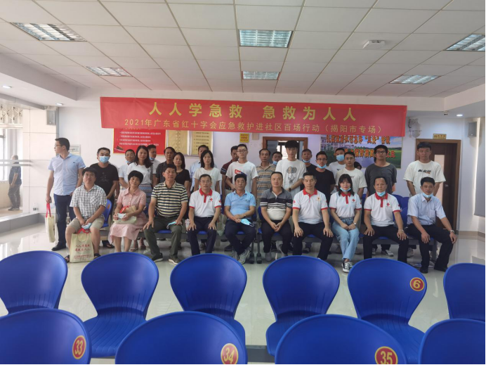 9月24日下午,广东省红十字会联合揭阳市红十字会、惠来县红十字会、惠来县惠城镇政府、惠来县惠城镇梅二社区举办“红十字应急救护进社区百场行动”揭阳专场第十二场。活动走进惠来县惠城镇会议室,共47名社区居民和志愿者参加。