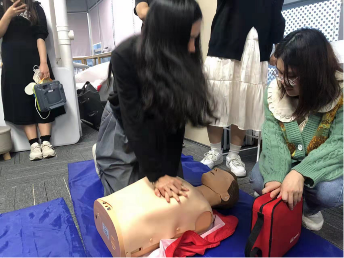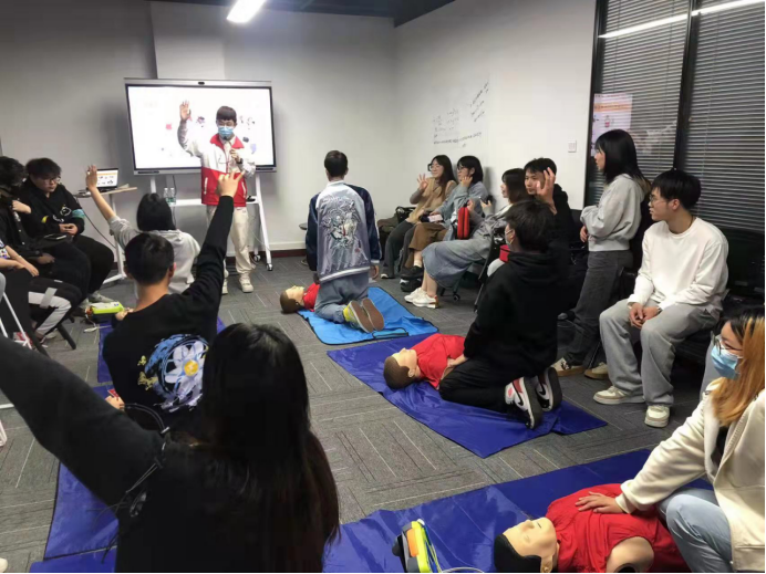 课程开始后主讲老师首先向到场学员以自己在工作中碰见的事例和生活中的例子,围绕对心脏骤停,AED的使用及日常意外伤害的应急处理的及急救方法,如何进行自救互救、减少伤亡等内容做了深入讲解,并现场指导学员对心肺复苏、AED的使用方法等救护技能进行演示和训练操作。