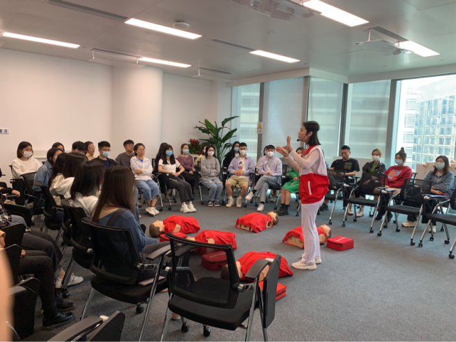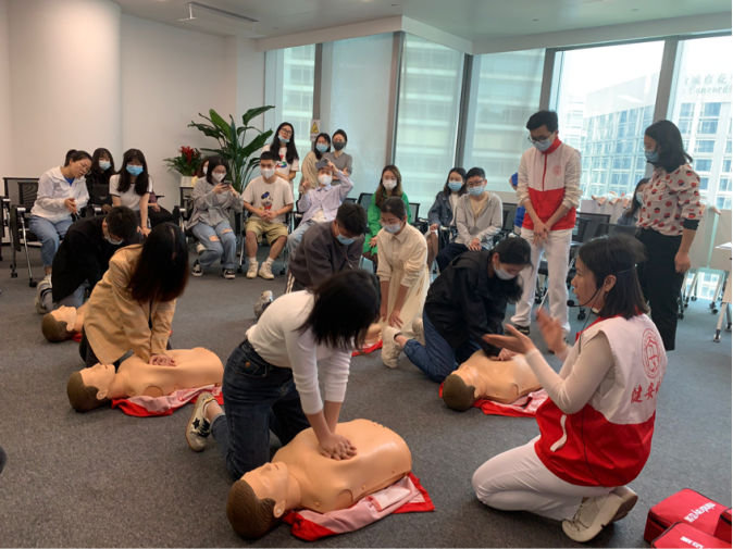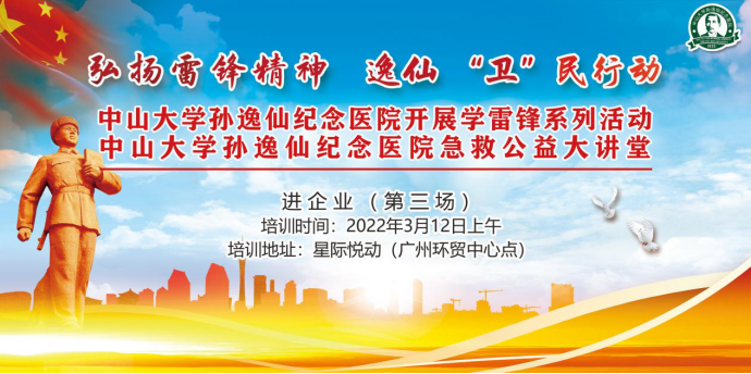 为企业的党员干部、职工普及急救知识和技能,提升应急救援能力,2022年3月12日上午中山大学孙逸仙纪念医院举办的“弘扬雷锋精神,逸仙‘卫’民行动”应急救护公益大讲堂(第三场)走入广州环贸中心为星际悦动的40余职工开展急救培训。