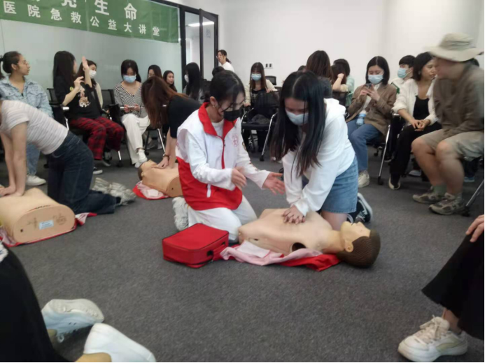 培训讲座的学习过程中理论与实际结合,学员们认真学习老师所介绍的关于现场应急救护、心肺复苏、出血止血、伤口包扎等理论知识,讲座期间学员与老师热烈讨论,交流意见。并在老师的指导下积极参与实操训练,通过实践巩固所学的理论知识,通过练习达到了预期的成果,加强了自身的安全防范意识和危急时刻的应急应变自救能力。