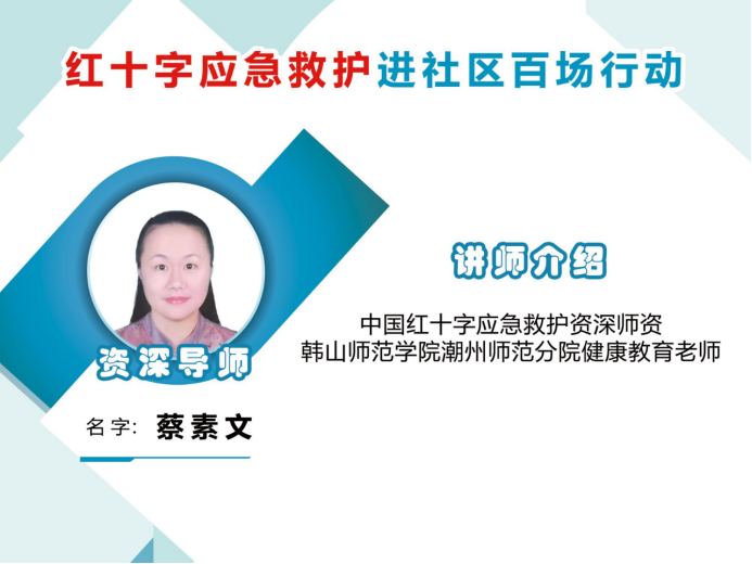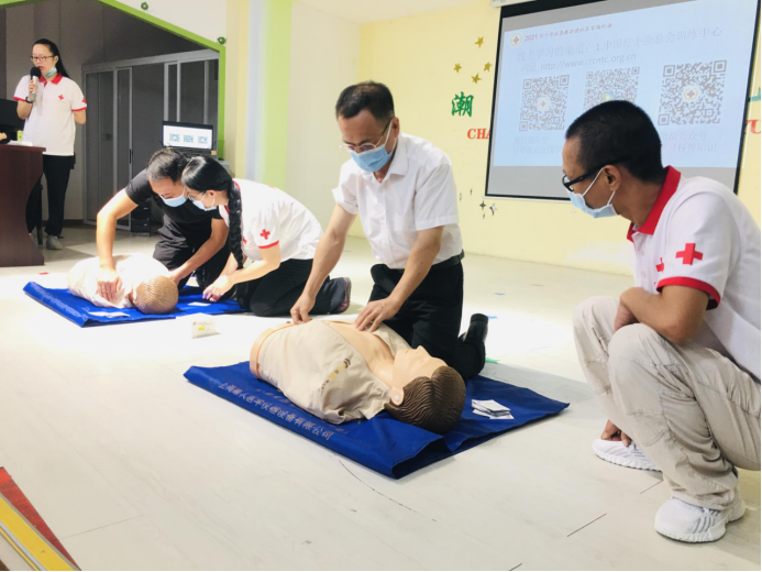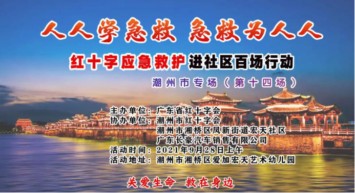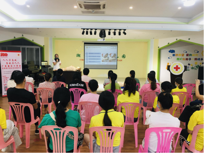 9月28日上午,广东省红十字会联合潮州市红十字会、湘桥区凤新街道宏天社区、广东长豪汽车销售有限公司在湘桥区爱加宏天艺术幼儿园组织开展,有32名居民和幼儿园老师参加,广东省红十字会应急救护师资蔡素文是本次课程的主讲老师。