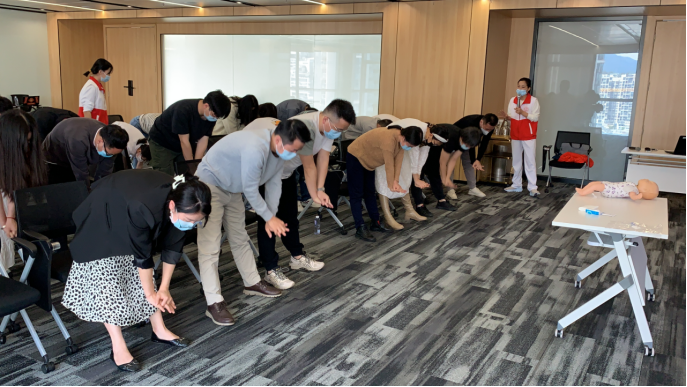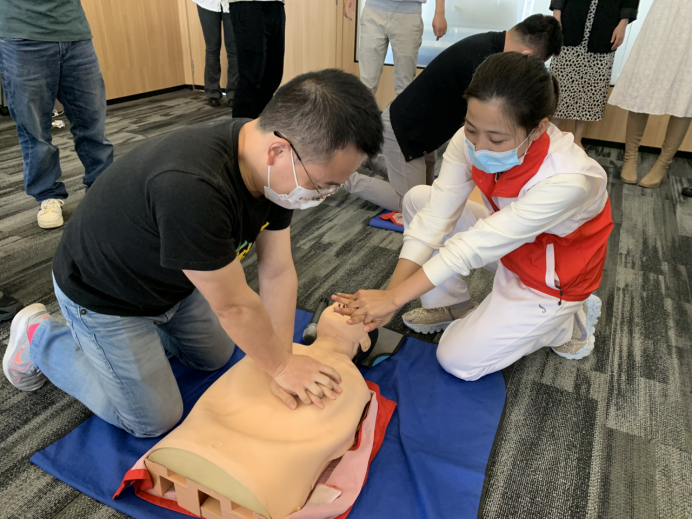 圆满结束。30余名职工学习了心肺复苏、AED和常见急救知识和技能。