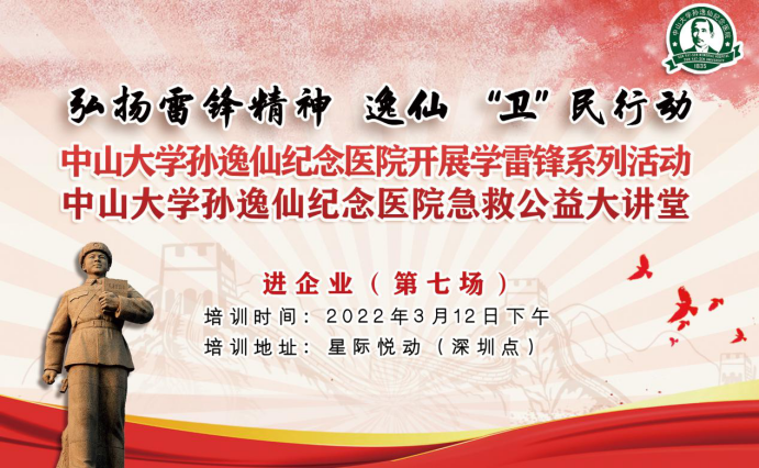 “突发事件中,如果遇到有人心脏骤停、异物窒息等时,如何提供及时的帮助?”,3月初中山大学孙逸仙纪念医院举办的“弘扬雷锋精神,逸仙”卫”民行动”应急救护公益大讲堂第七场走进星际悦动深圳点,38名企业员工参加学习。