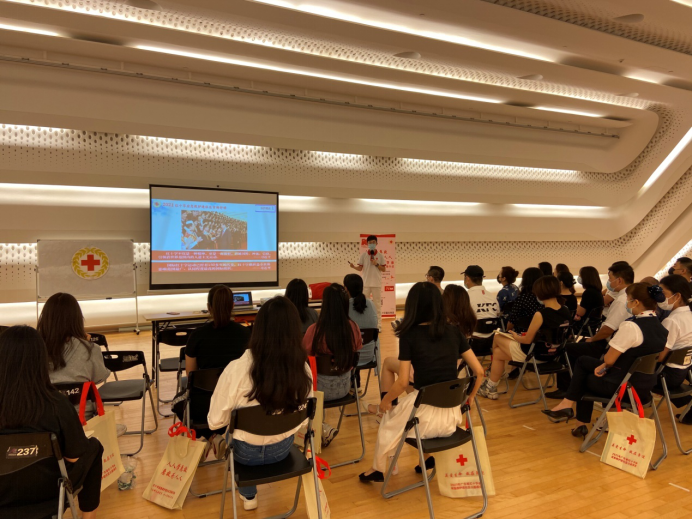 9月30日下午,广东省红十字会联合广州市红十字会、猎德街道办举办“红十字应急救护进社区百场行动”广州专场第十三场活动走进广州大剧院,40余名剧院员工、物业人员、商户、居民志愿者参与本次活动。