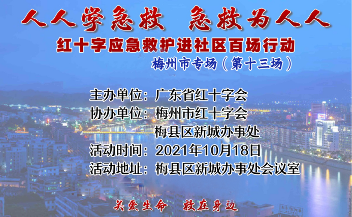 为增强了社区群众的急救意识,提高了群众处理突发事件的应急能力,有效降低了社区安全风险,10月18日下午,由广东省红十字会主办的红十字应急救护进社区百场行动梅州专场第十五场活动在梅县区新城办事处举行。