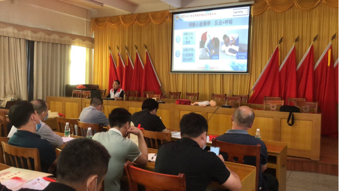 本次活动由省红十字会应急救护师资团队为83名街道工作人员、居民开展红十字应急救护知识与技能培训活动,课程由红十字应急救护师资刘丹丹教授主讲。