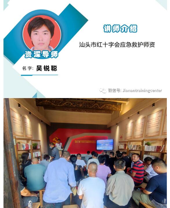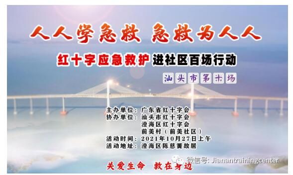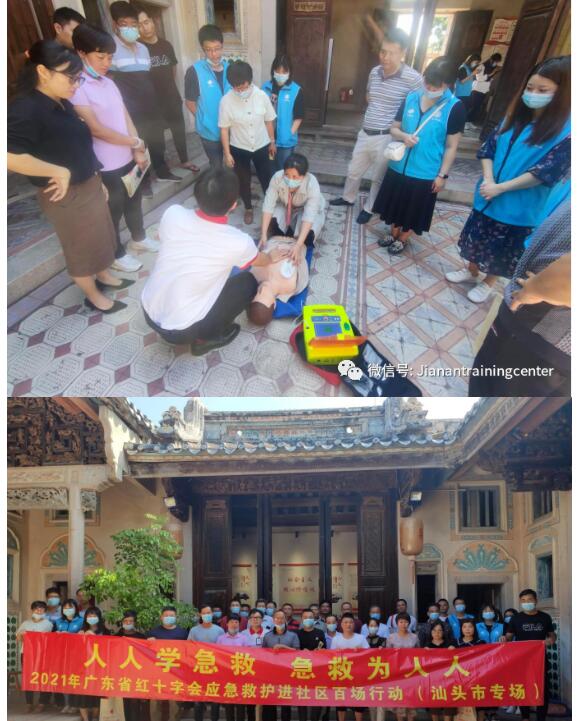 10月27日上午,广东省红十字会联合汕头市红十字会、澄海区红十字会、前美村(前美社区)在澄海区陈慈黉故居开展红十字应急救护进社区百场行动汕头市专场第十场培训,吴锐聪为居民、社区工作人员授课,共45名人参加。