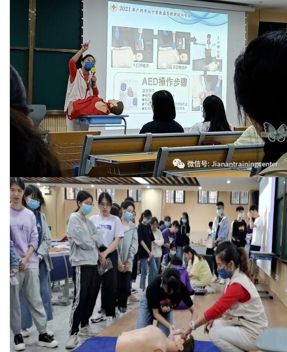 | 为了发挥红十字工作的育人作用,继承和发扬“人道、博爱、奉献”的红十字会理念,增强学生们的急救安全意识,提高学生救护能力。2021年10月30日,广州市红十字应急救护公益培训课程分别来到广东外语外贸大学南校区和北校区,课程由红十字会师资进行授课培训,约100名学生来到现场参与红十字救护员公益培训课程。 |