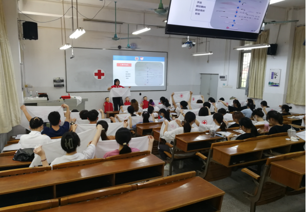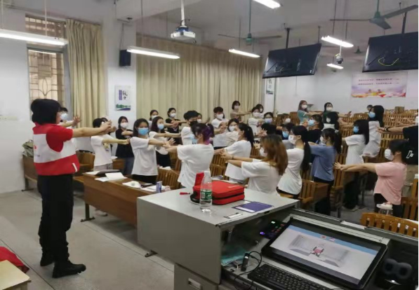 5月29日,番禺区红十字会走进广东轻工职业技术学院开展应急救护培训课程。