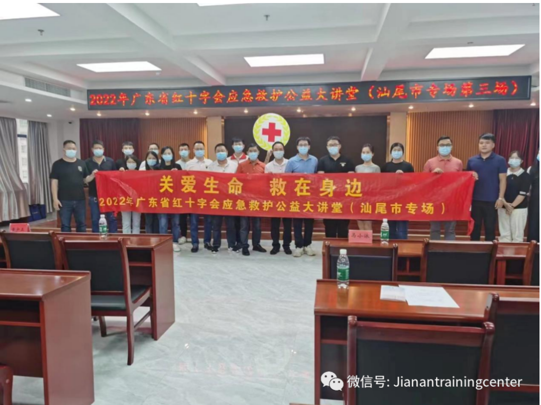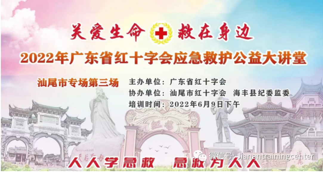 2022年6月9日下午,广东省红十字会,汕尾市红十字会,海丰县纪委监委联合开展2022年广东省红十字会应急救护公益大讲堂。