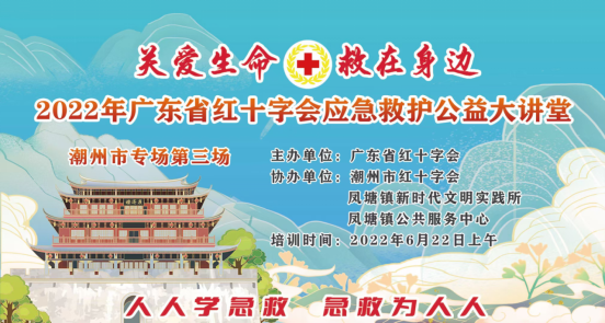 6月22日上午,由广东省红十字会主办,潮州市红十字会联合凤塘镇新时代文明实践所、凤塘镇公共服务中心协办的“2022年广东省红十字会应急救护公益大讲堂”潮州专场第二场活动顺利开展。活动共50名社区居民、社区工作人员、志愿者参与。