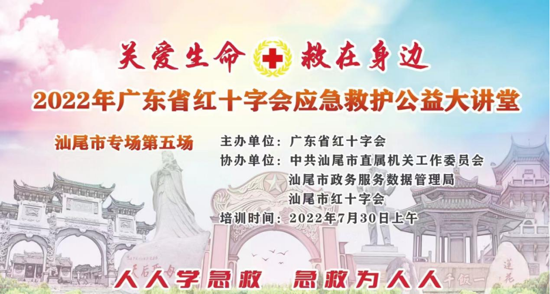7月30日上午,由广东省红十字会主办的“2022年广东省红十字会应急救护公益大讲堂”汕尾专场第五场来到汕尾市政务服务数据管理局,共50人参加。