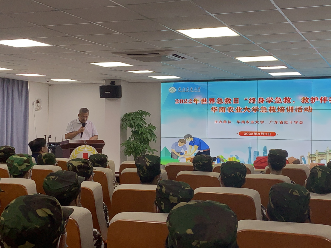 为深入实施《健康中国行动(2019-2030)》,落实《广东省教育厅 广东省红十字会关于进一步加强学校应急救护工作的通知》要求,积极推动在学校开展群众性应急救护的宣传和实践活动。2022年9月9日下午,广东省红十字会应急救护公益大讲堂走进华南农业大学(以下简称“华农”),共有50名新生代表参与学习。
